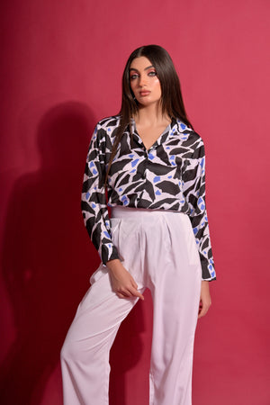 Step into effortless style with the Abstract Relax Fit Crepe Satin Shirt paired with White Twill Lycra Trousers from Gardenparty. The shirt, crafted from soft crepe satin, features a bold abstract print that brings a contemporary edge to any outfit. Its relaxed fit ensures all-day comfort. Complementing this is the White Twill Lycra Trousers, designed for a sleek and structured fit with just the right amount of stretch for ease of movement. This chic combination is perfect for women and girls who appreciate modern, easy-to-wear western outfits that can transition seamlessly from day to night.