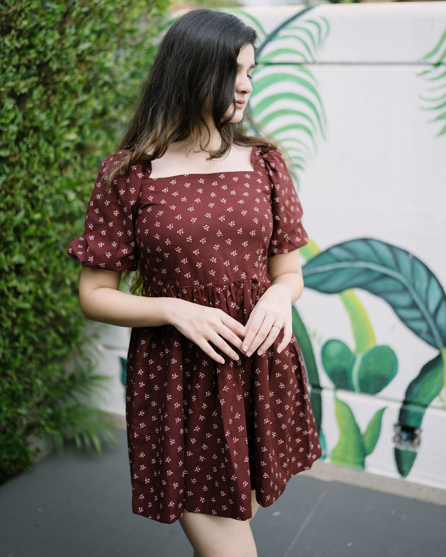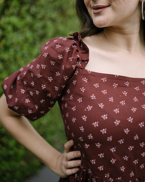 Embrace effortless style with our Brown Floral Cotton Dress, designed for comfort and timeless charm. Made from soft, breathable cotton, this dress is perfect for all-day wear, whether it’s a casual brunch, a summer outing, or a relaxed evening event. The delicate floral print on a warm brown backdrop adds a feminine touch, while the lightweight fabric ensures ease of movement. Pair it with sandals for a daytime look or dress it up with heels and accessories for a chic evening outfit.