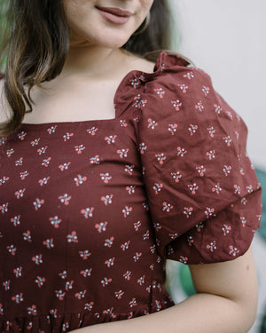 Embrace bohemian charm with our Brown Floral Mini Dress, a whimsical ensemble that captures the essence of free-spirited style. Adorned with intricate floral prints against a rich brown backdrop, this dress radiates warmth and earthy elegance. The mini length and flowy silhouette add a playful touch, perfect for sunny days and carefree adventures. Whether you're exploring quaint cafes or dancing under the stars, this dress is your go-to choice for effortlessly chic summer style.