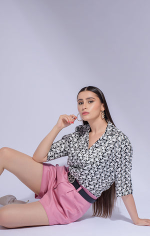 Add a pop of color to your wardrobe with our Contrast Satin Shirt paired with pink bermuda shorts. Vibrant and stylish, this ensemble offers a playful and trendy look.