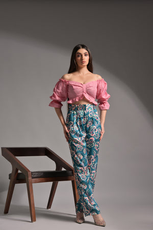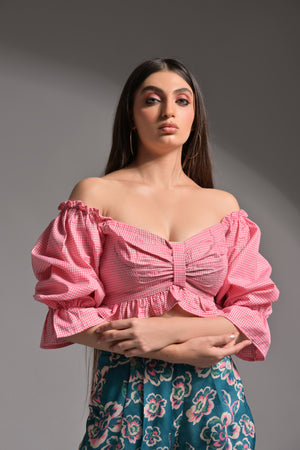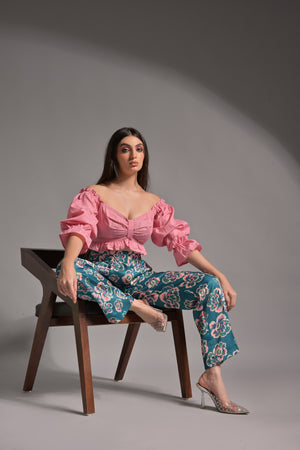 This set features a playful pink gingham top paired with elegant floral trousers. The gingham pattern provides a classic touch while the floral print adds a feminine flair, making it the perfect ensemble for a weekend brunch or a garden party.