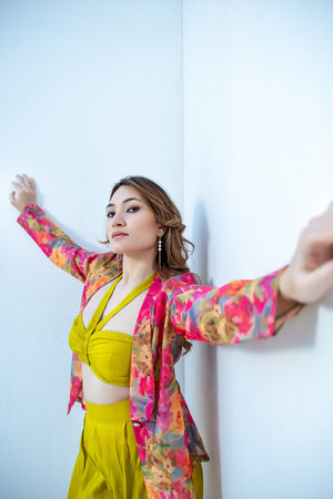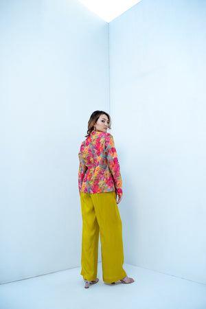 Indulge in playful elegance with our Pink & Green 3 Piece Co Ord Set. The vibrant pink and green hues bring a refreshing and youthful vibe to your wardrobe. This set exudes a sense of joy and positivity, making it perfect for those who love to embrace color and express their vibrant personality through fashion.