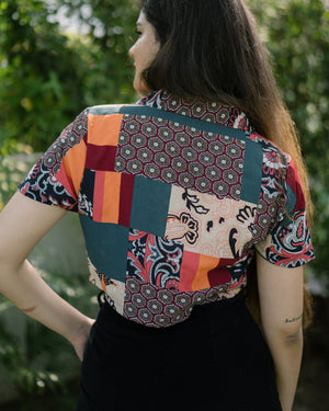 Introducing our Multicolor Printed Crop Shirt, a vibrant and versatile addition to your wardrobe. Featuring captivating multiprint designs, this top-only ensemble effortlessly combines style and comfort for a chic look that stands out from the crowd.