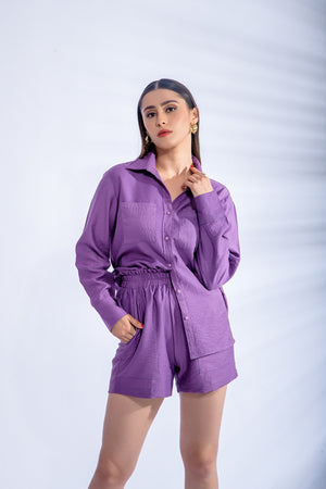 This co-ord is ideal for casual outings, brunches, vacations, or relaxed weekend wear. Its vibrant purple hue combined with the textured cotton fabric ensures a chic, modern silhouette that stands out effortlessly. Designed for women who love comfort without compromising on style, this set is a versatile wardrobe essential.