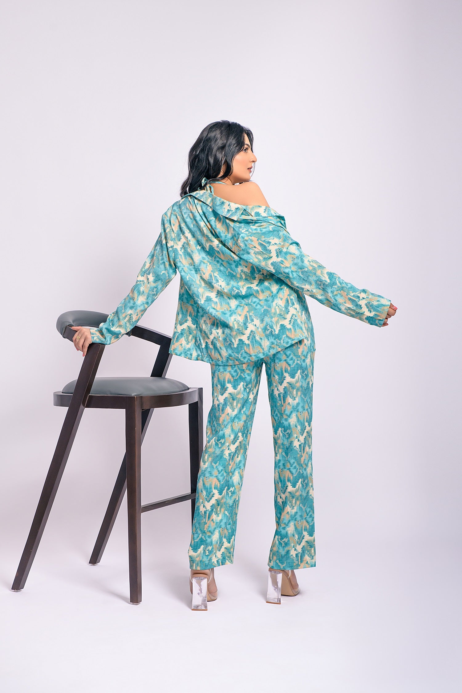 Turquoise Printed 3 Piece Co Ord Set (Combo)