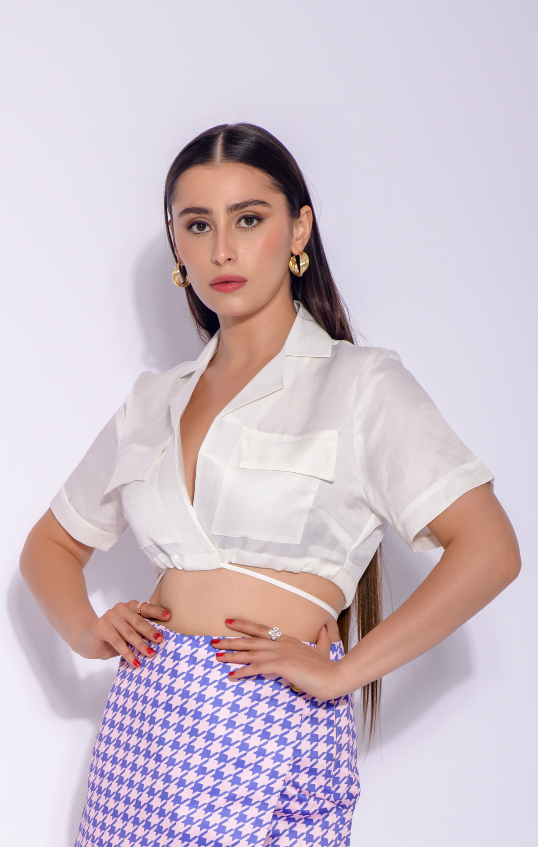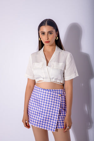 Step into effortless elegance with our White Tie-Wrap Shirt & Satin Skort Set, crafted for modern, stylish women. The shirt is made from premium viscose fabric, offering a soft, breathable, and lightweight feel that drapes beautifully, while the tie-wrap design adds a flattering, adjustable fit and a chic, feminine touch.